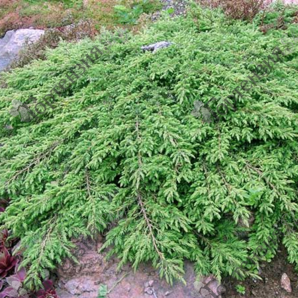 Можжевельник обыкновенный Репанда - плотный густой хвойный кустарник, высотой не более 0,5 м и разрастающийся в диаметре до 2,5 м. Годовой прирост около 10 см в ширину. Крона стелющаяся, густая, округлая. Боковые побеги широко-выдающиеся, равномерно распространены во все стороны. Хвоя игольчатая, мягкая, темно-зеленая, зимой буреет. Неприхотлив к условиям произрастания. Морозостоек.