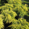 Можжевельник средний 'Кинг оф Спринг' - вечнозеленый декоративный многолетник высотой до 50 см, и шириной до 1,5 м. Крона чашевидная, асимметричная. Ветви растут вверх, концы дугообразно направляются к почве. Нарастает на 10–15 см в год.  Имеет плотную и густую хвою яркой желтой окраски. Она не колется. На старых побегах хвоя игловидная, на концах ветвей чешуйчатая.К почве не требователен. Хорошо растет в условиях города. Не боится морозов и холодных ветров. Небольшой рост позволяет высаживать этот сорт при оформлении камней и садовых водоемов, в рокариях и миксбордерах.
