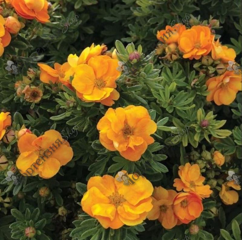 Лапчатка кустарниковая Мармелад (Potentilla fruticosa Marmalade)  - кустарник с густой шаровидной кроной. Высота взрослого растения до 60 см. Цветки махровые, ярко-оранжевые. Диаметр до 5 см. Листья перисто-рассечённые, темно-зеленые. Цветение обильное, июнь - октябрь. Место солнечное или полутенистое. Нуждается в обильном поливе. Предпочитает плодородную, увлажненную почву с дренажем. Сорт устойчив к болезням и вредителям.