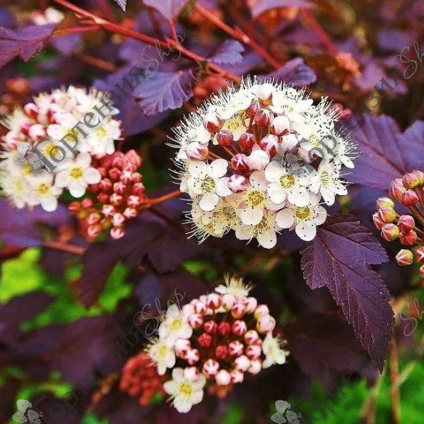 Пузыреплодник калинолистный Ред Барон (Physocarpus opulifolius Red Baron) – кустарник высотой и шириной 1,5-2 метра, с шаровидной густой кроной. Листья резные, гофрированные, тёмно-красные, с оранжевым оттенком на верхушках, осенью становятся бронзовыми. Соцветия округлые, бело-розовые, сформированы из маленьких венчиков. Плоды – вздутые листовки. Пузыреплодник Ред Барон прекрасно смотрится в качестве живой изгороди, в групповых и одиночных посадках.