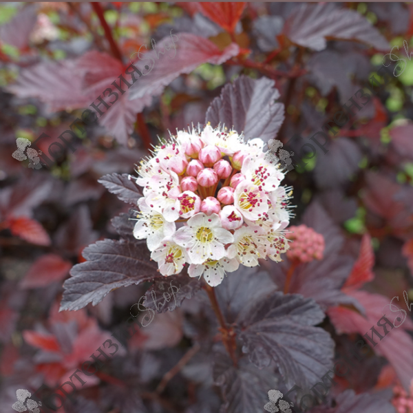 Пузыреплодник калинолистный 'Рубелла' (Physocarpus opulifolius ‘Rubella’) -многолетний кустарник, прямостоящий, высотой и шириной до 150 см, листья трехлопастные средние красно-рубинового цвета и зубчатым краем. Цветение с июня до августа, цветки нежно-розовые в зонтичных соцветиях, осенью после цветения созревают плоды-коробочки. Пузыреплодник широко используется в ландшафте, высаживается в одиночной и групповой посадке, как элемент живой изгороди. К почвам не требователен. Морозостоек.
