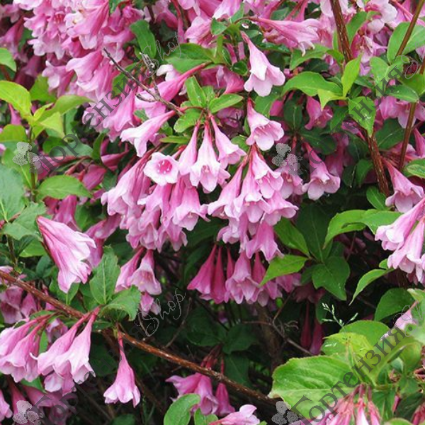 Вейгела 'Bouquet Rose' - плотный декоративный листопадный куст до 2м в высоту. Форма кроны округлая и плотная. Листья эллиптические, ярко-зеленые сверху и светлее с обратной стороны. Цветы собраны в небольшие соцветия, расположенные на верховых и боковых коротких молодых побегах. Цветки извне пурпурно-карминные, внутри - нежно-розовые. Очень частым для 'Bouquet Rose' является повторное цветение. Вейгелы относятся к ценимым садовым декоративным кустарникам из-за низких требований к выращиванию и уходу.