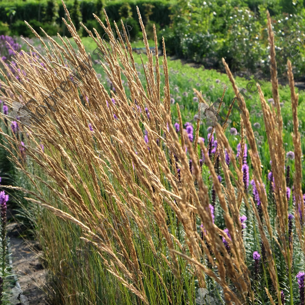 Вейник остроцветковый 'Карл Форстер' (Calamagrostis acutiflora 'Karl Foerster') Вертикальные прочные стебли с зелёными блестящими листьями, сохраняющими свой цвет в течение лета. Крепкие побеги легко выдерживают даже сильные порывы ветра. Метёлки рыхлые, пурпурного цвета, появляются во второй половине июня, в конце августа приобретают золотистый оттенок. Используется в качестве вертикального акцента, эффектного заднего плана в садах и цветниках природного типа,