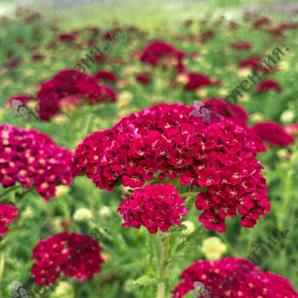 Тысячелистник обыкновенный Тутти Фрутти Помгранат (серия Tutti Frutti) сорт Pomegranate" - компактное многолетнее травянистое растение отличается пышным, обильным и долгим цветением. Легкий в уходе, не требовательный к почвам и поливу. Плотный куст с пышным цветением в июле-августе. Соцветия, диаметром до 10 см, состоят из небольших малиново-красных цветочков, которые не выгорают на солнце. Зимостоек. К почвам не требователен. Используется в одиночных и групповых посадках в цветниках и миксбордерах.