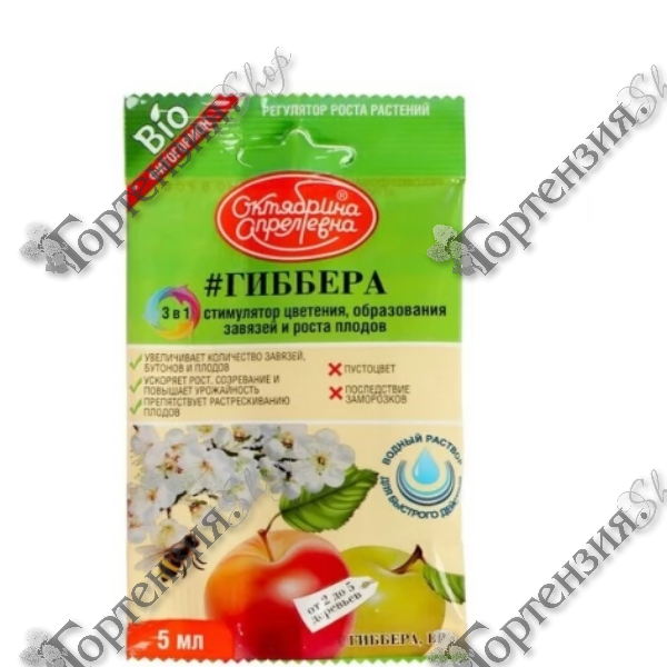 Биологический фитогормон, регулирующий развитие и рост растения. Применяется в качестве стимулятора плодообразования, усилителя ростовых и формообразовательных процессов, также ускоряет срок созревания плодов.